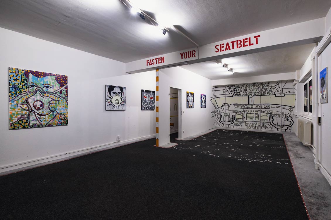 Nehmt Platz, lehnt euch zurück und „Bitte anschnallen!“, denn das Flugzeug ist „cleared for take-off“. Der in Hamburg lebende Künstler MIR lädt im OZM HAMMERBROOKLYN mit seiner Ausstellung Fasten your Seatbelt zu einer besonderen Reise ein. Hier ist nichts so, wie es auf den ersten Blick scheint. So auch der vom Künstler gewählte Ausstellungstitel: Denn es handelt sich hier nicht nur um die englischsprachige Flugzeugansage, sich bitte anzuschnallen, sondern auch um einen symbolischen Hinweis von MIR zur aktuellen Situation und den festgelegten Maßnahmen. Durch das „psychologische anschnallen“ ist die Gesellschaft gezwungen, mit Einschränkungen zu leben. Da bedarf es manchmal einer Rettungsweste, um sich nicht unterkriegen zu lassen, was auch eine Art von Kunst ist. Die Arbeiten von MIR entstanden alle vor der Ausbreitung des Coronavirus in Europa und muten daher wie eine Prophezeiung auf die bevorstehende Zukunft an.