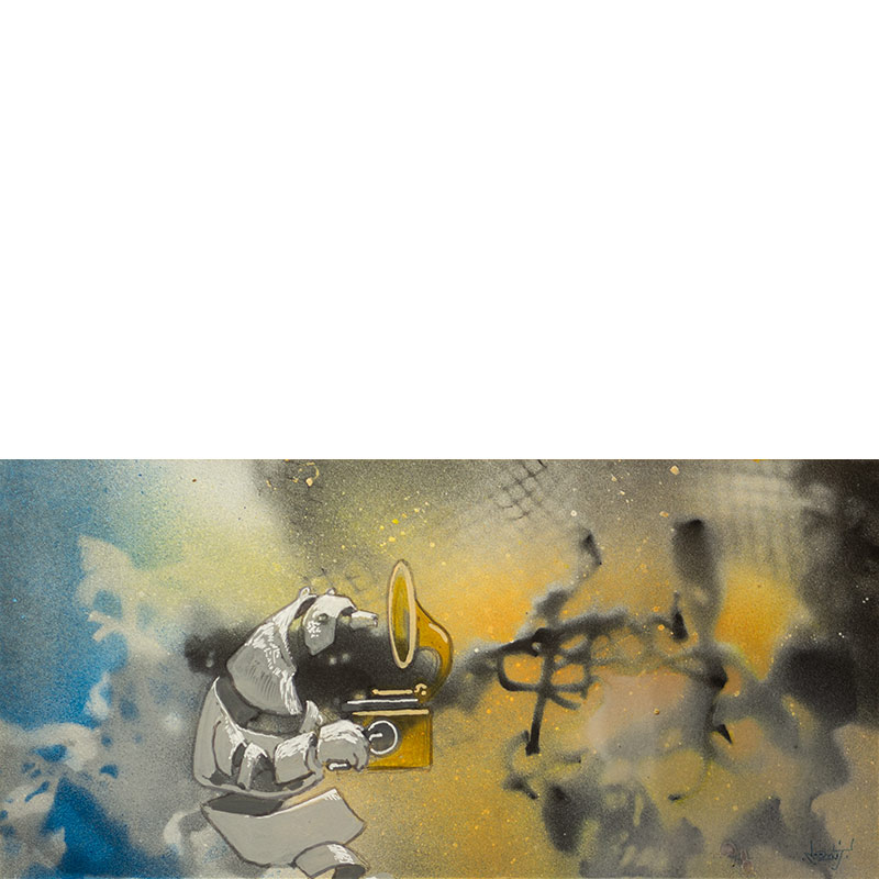 Loomit | Genuss 2 | Sprühlack und Marker auf Holz | 14 x 29 cm | 2020